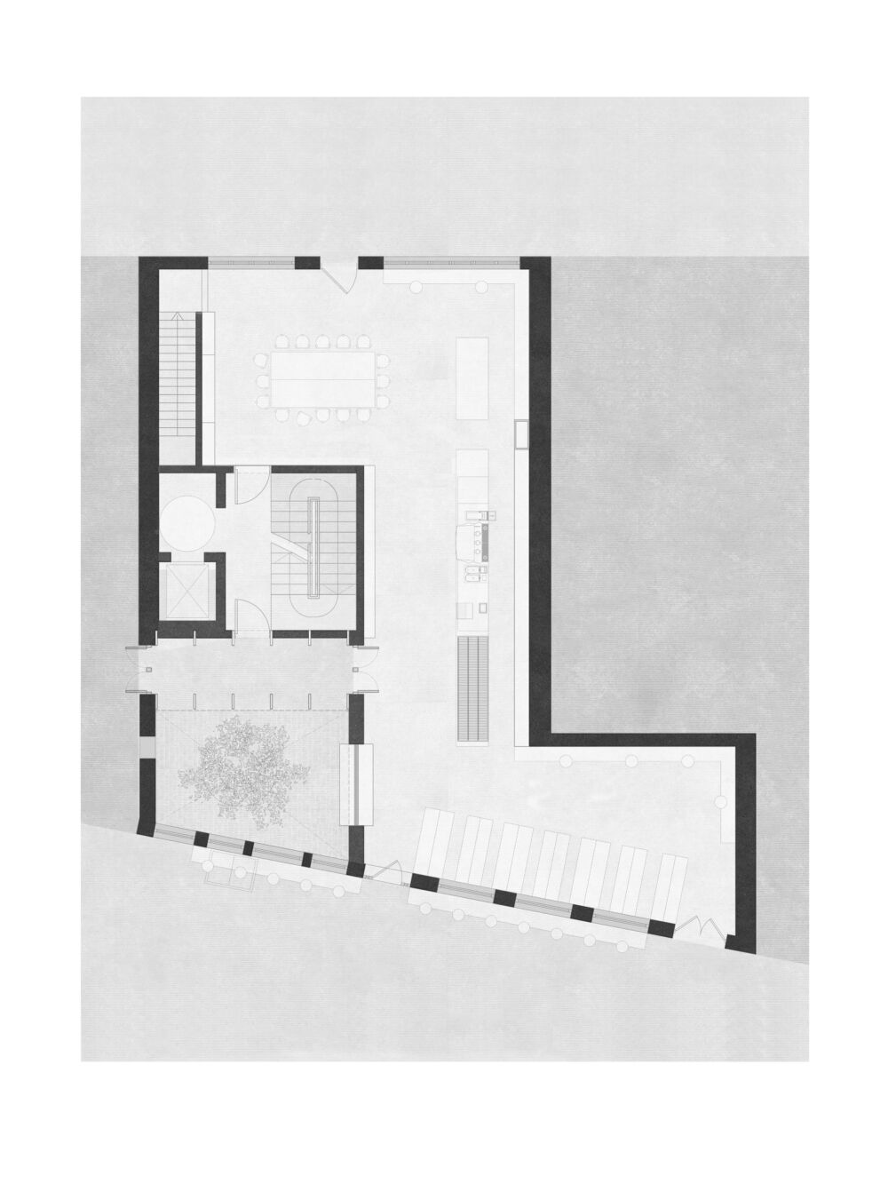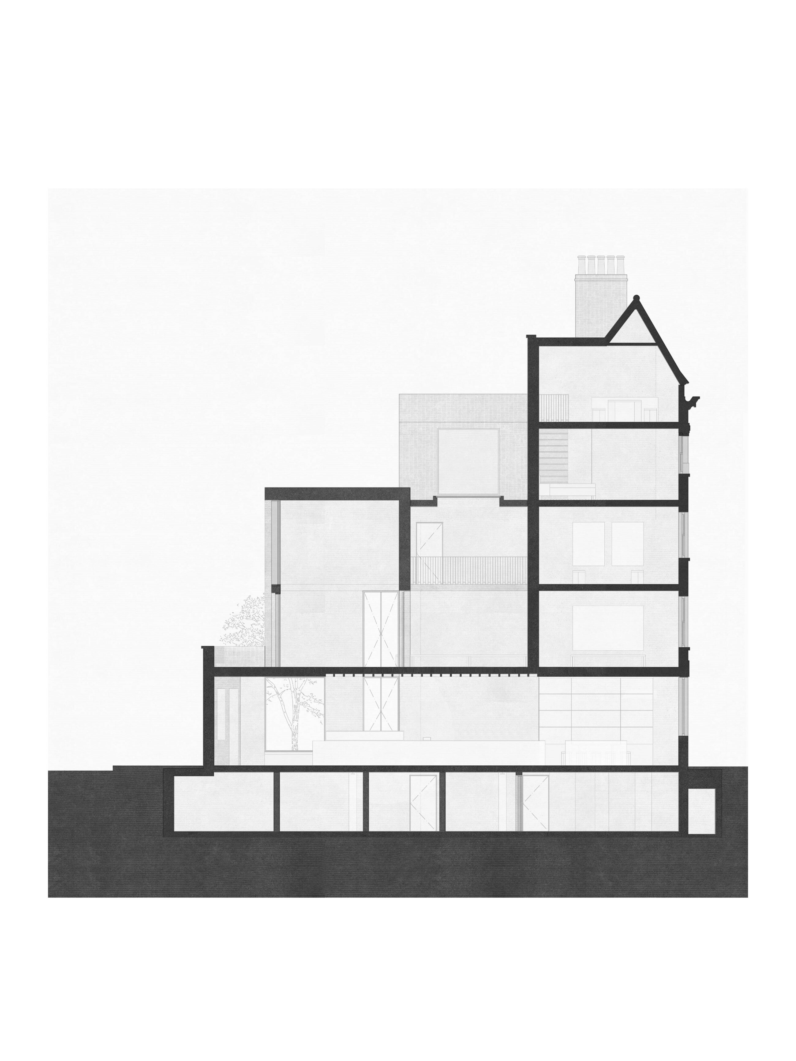 The subtle yet bold gesture of the new interlocking structure acts as a bridge to the new spaces, connecting visually to different levels of the building. The steel language is a nod to the industrial heritage of the mews and can be seen as a reference to the working nature of this part of London.