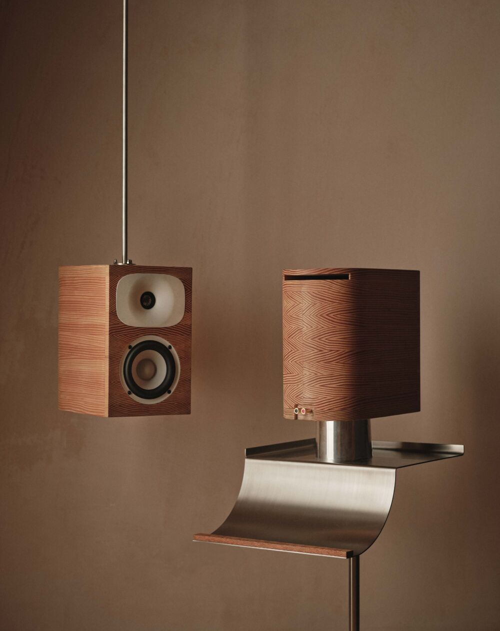 A full-height sliding door connects the main bedroom to the kitchen, allowing borrowed light to filter deep into the plan. A study off the corridor doubles as a workshop space, often populated with found materials that form part of future experiments. Completing the home is a collection of bespoke objects including a stacked coffee table that forms part of an ongoing studio collection, and a custom Douglas fir speaker developed in collaboration with Friendly Pressure and Our Department.