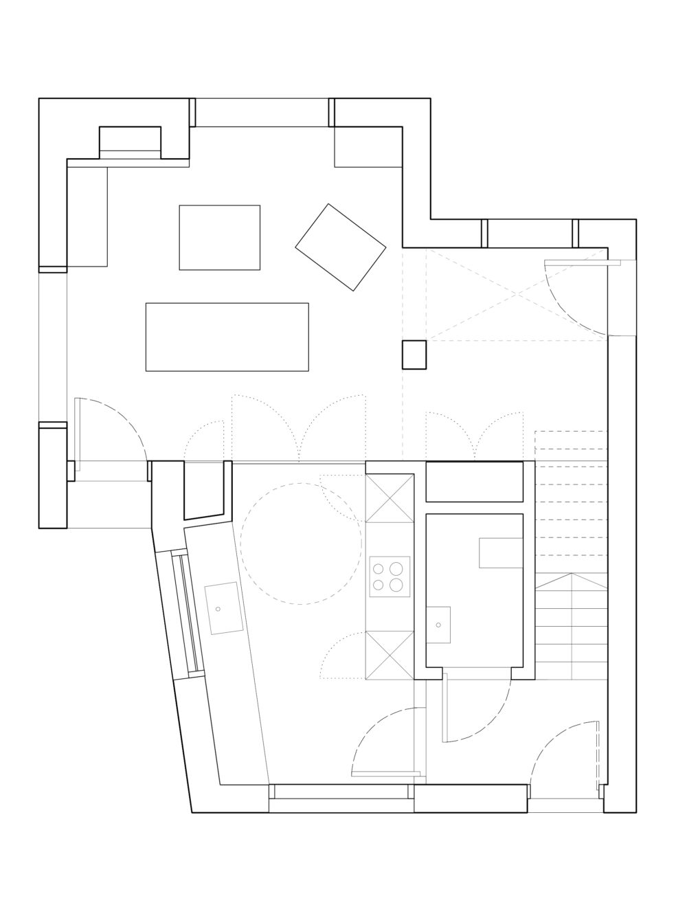 The brief asked for a design that was simple yet could offer better connections to the gardens with a more open and accessible internal configuration. A generous sitting room with adjacent dining area and the kitchen make for a spacious ground floor while upstairs offers an ironing room, a large bedroom with views across the countryside and the ensuite, which altogether fits an airy and inviting home for the elderly owner. The layout is designed to allow for easy mobility and has been future-proofed to allow the installation of a lift should it be required.